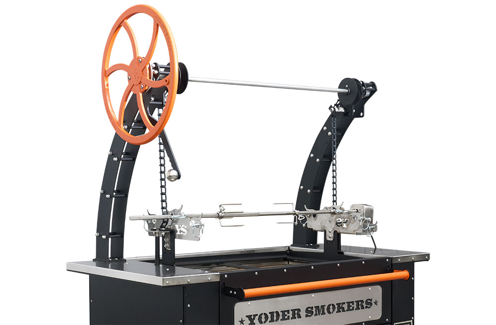 Elevate your open-fire grilling with the Yoder Smokers Rotisserie Kit, precision-crafted for the iconic El Dorado Santa Maria-style grill. Designed for effortless setup and built to withstand countless backyard gatherings, this kit transforms whole chickens, roasts, turkeys, and even fire- kissed vegetables into mouthwatering masterpieces. Rugged stainless steel construction and legendary American-made quality ensure every meal becomes a true fireside feast.
