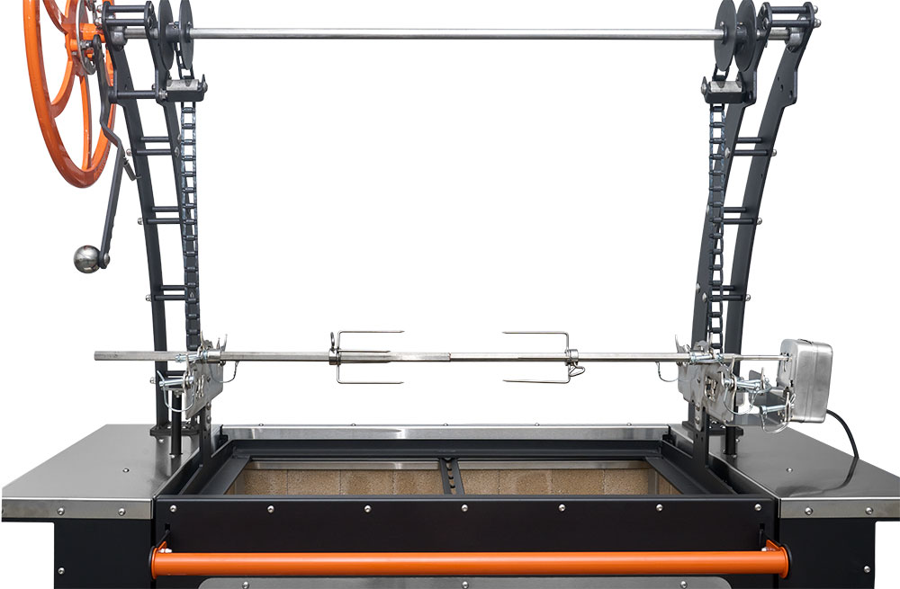Rotisserie cooking slowly turns your food over live fire, delivering even cooking, juicy tenderness, and deep, smoky flavor. The slow rotation bastes your meat in its own juices, while the open flame infuses it with the unmistakable taste of Santa Maria-style grilling—classic Americana flavor, perfected.