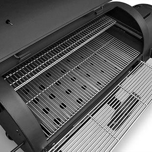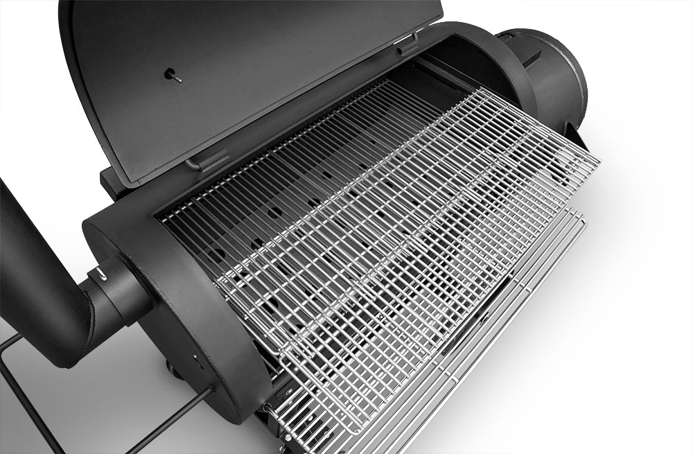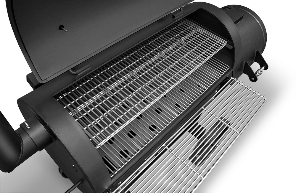Splitting the grate into two sections makes handling more manageable when loading food, rotating product, or pulling the grates for cleaning after a long day on the pit.
