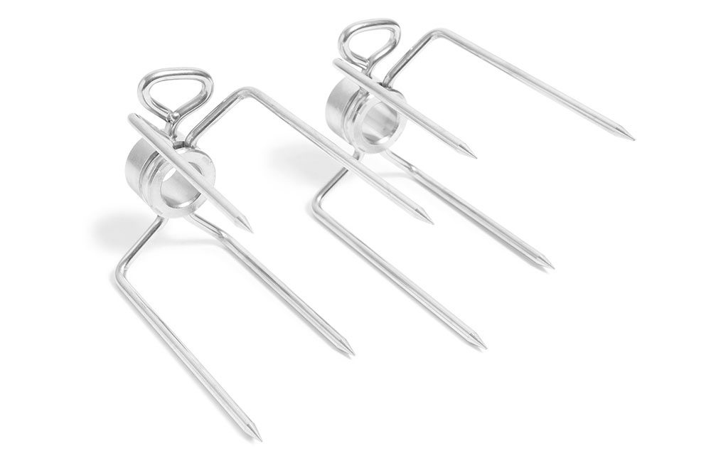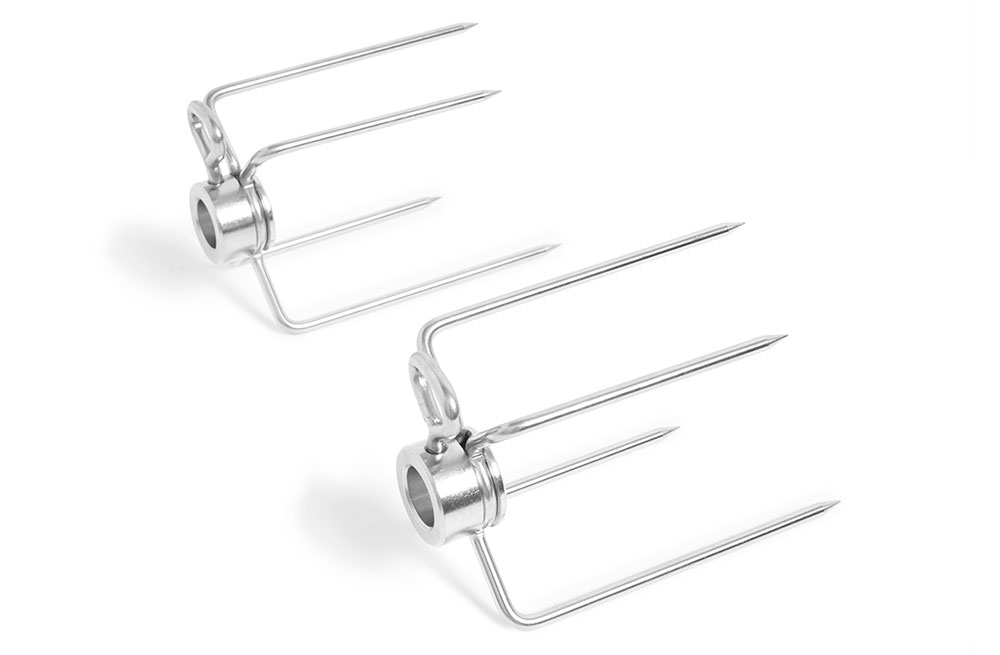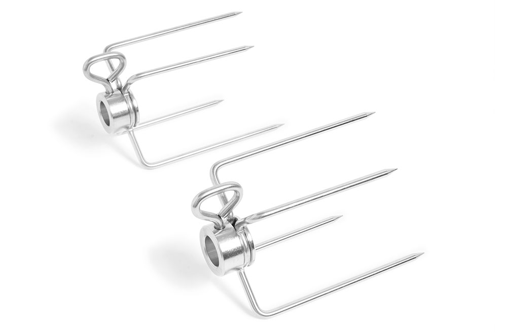 Built from heavy-duty stainless steel, these forks are designed to hold food securely on the spit for even, reliable rotation and consistent results.