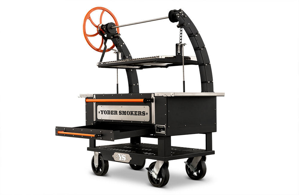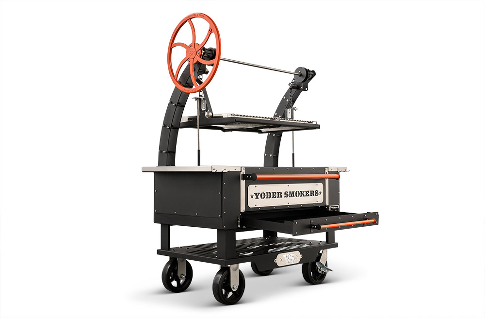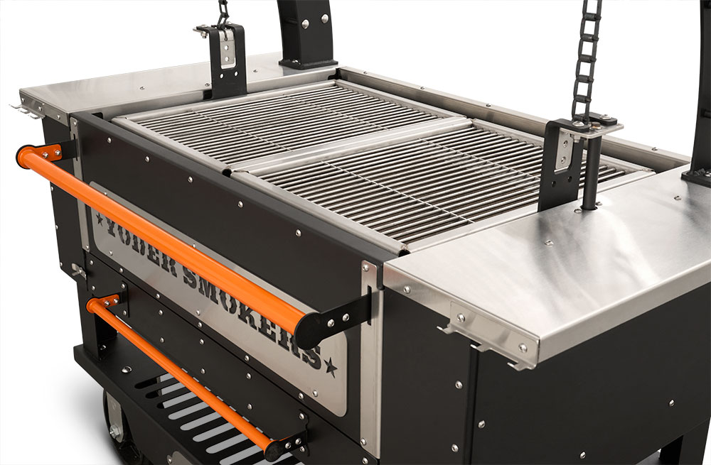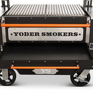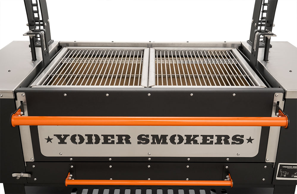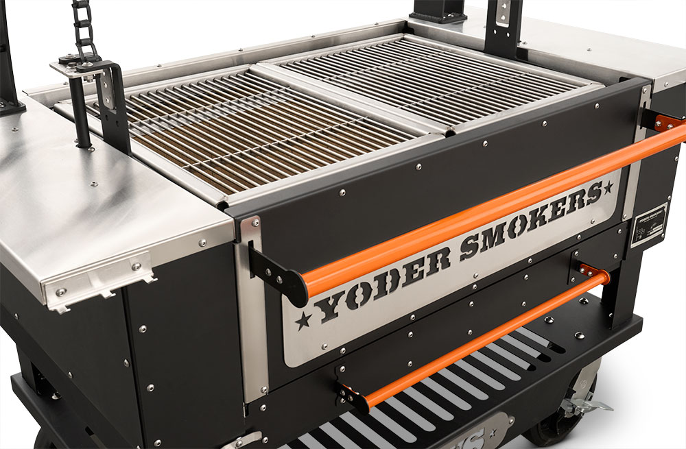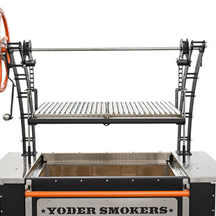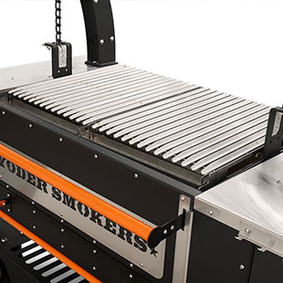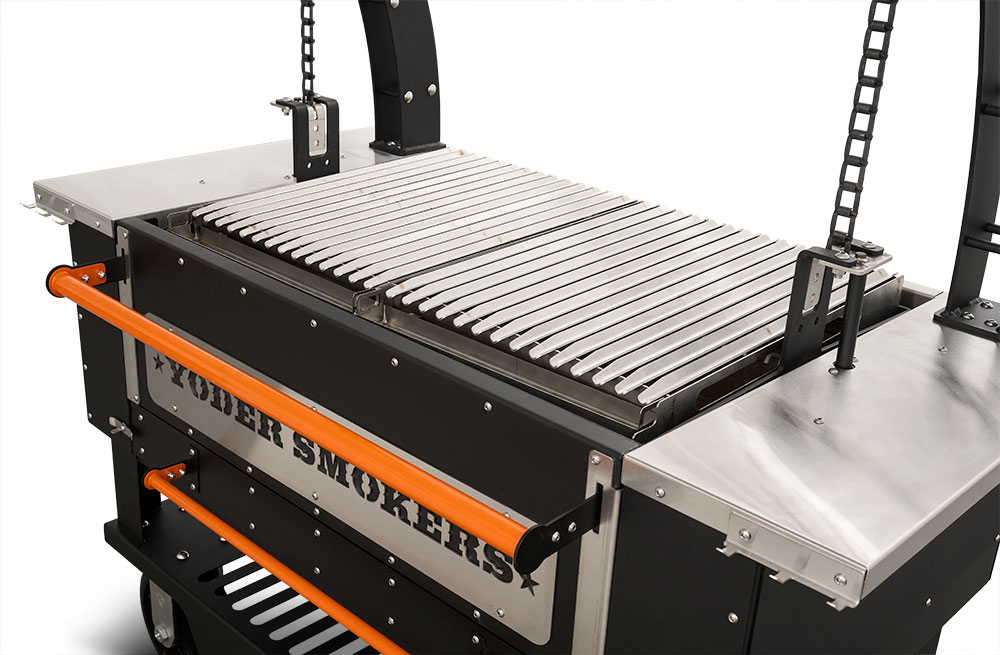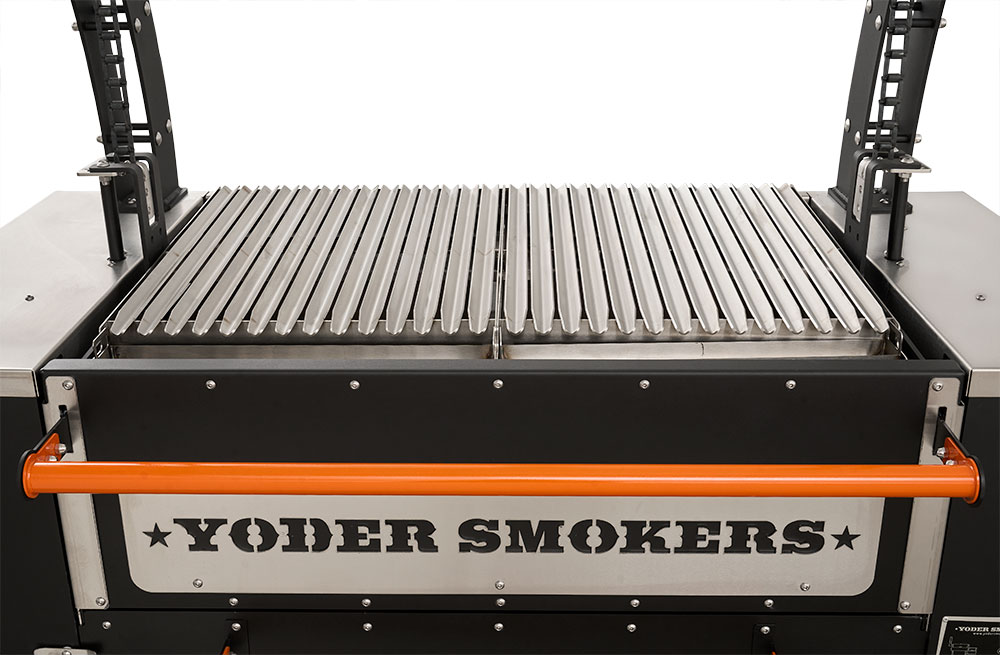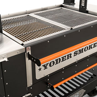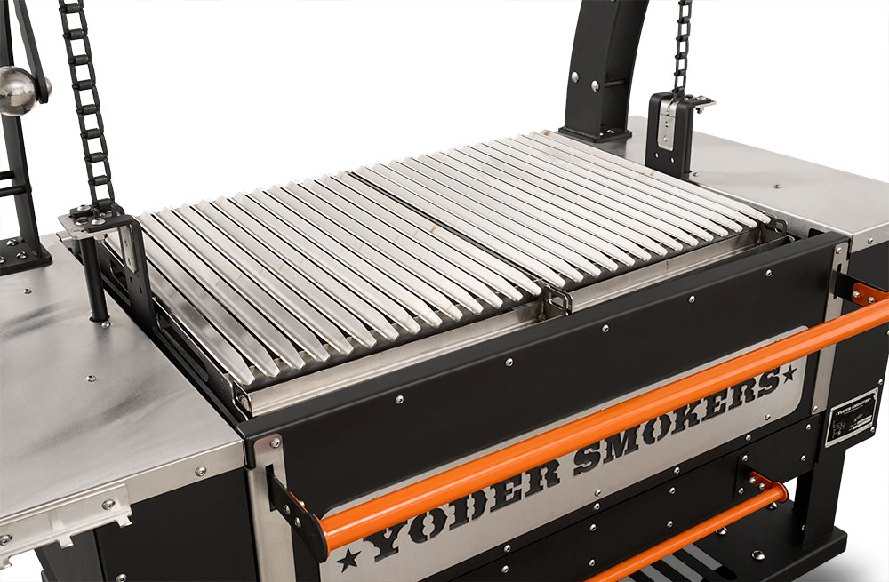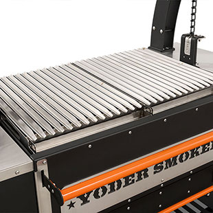 - Constructed from heavy-duty 304 stainless steel, patent-pending rolling rod grates provide a smooth, round bar cooking surface that allows food to move effortlessly across the grill. Ideal for a wide range of proteins and vegetables, this design enhances versatility while maintaining durability in high-heat, live-fire environments. Engineered with our advanced Floating Rod System, this innovative grate system retains 30% more heat than standard welded grates—delivering increased searing power, improved warp resistance, and effortless food release, all built on the Yoder Smokers egacy of uncompromising American craftsmanship.