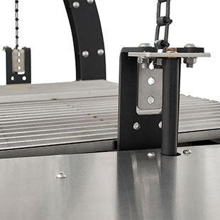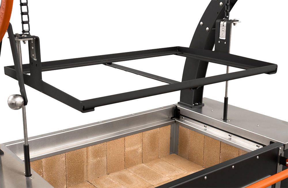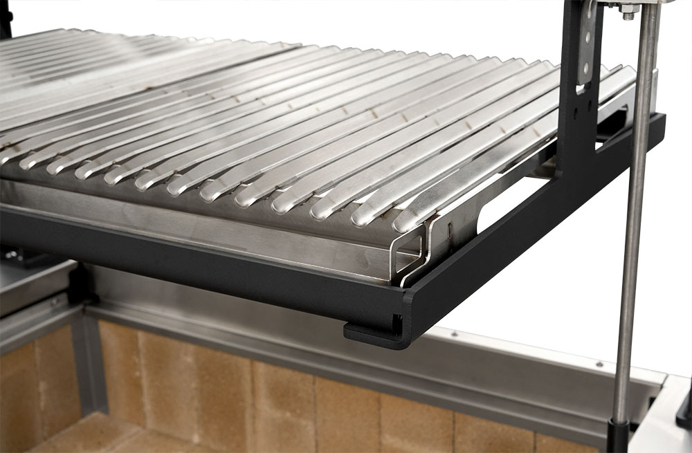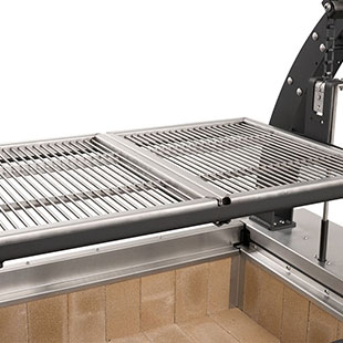 - Cantilever arms provide open access to the cooking area from all sides. The arms also bolt in place which will allow for serviceability for the life of the grill.