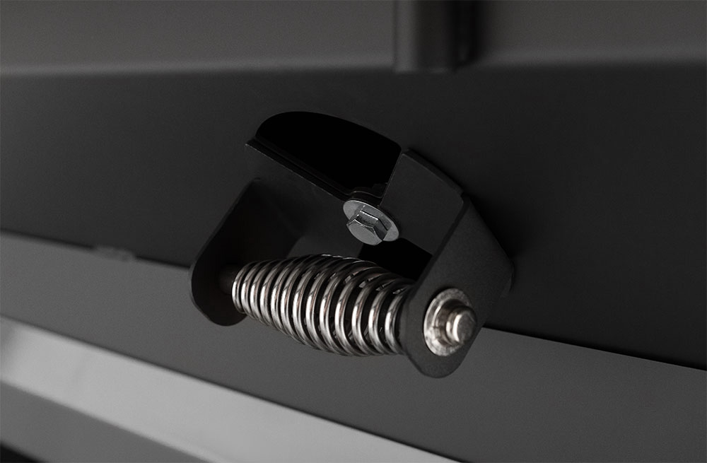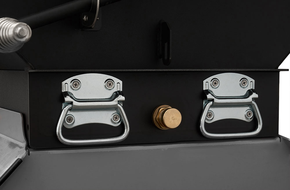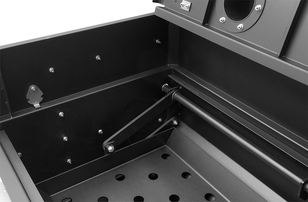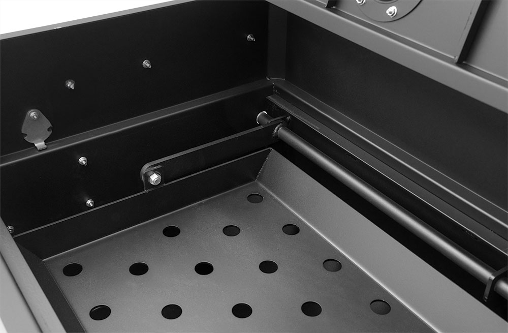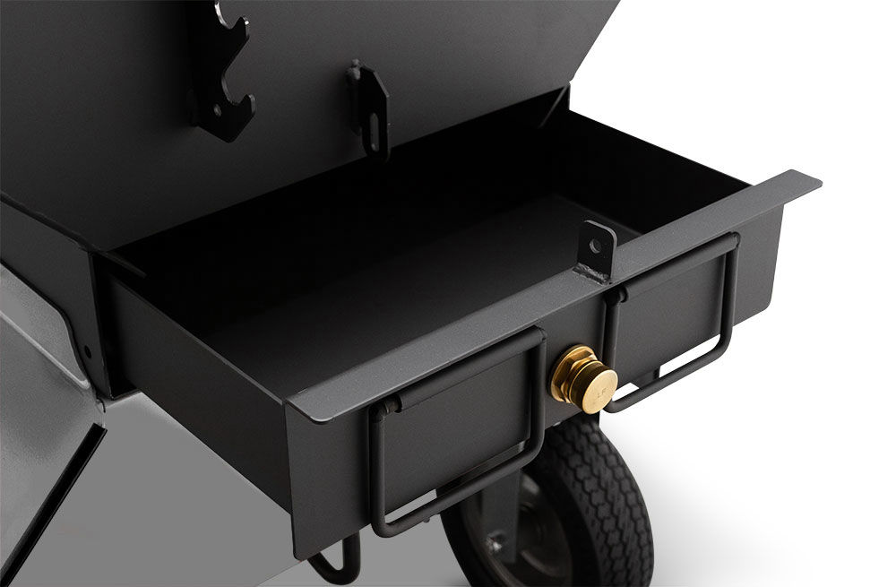 - Slide-out Full-Length Ash and Grease Tray
