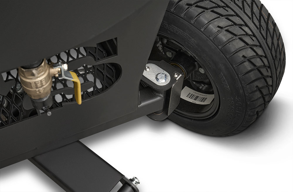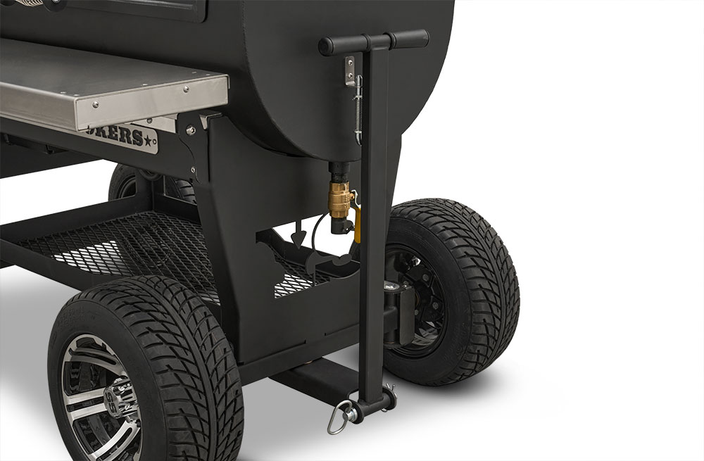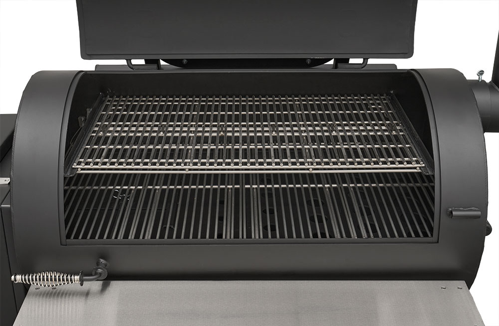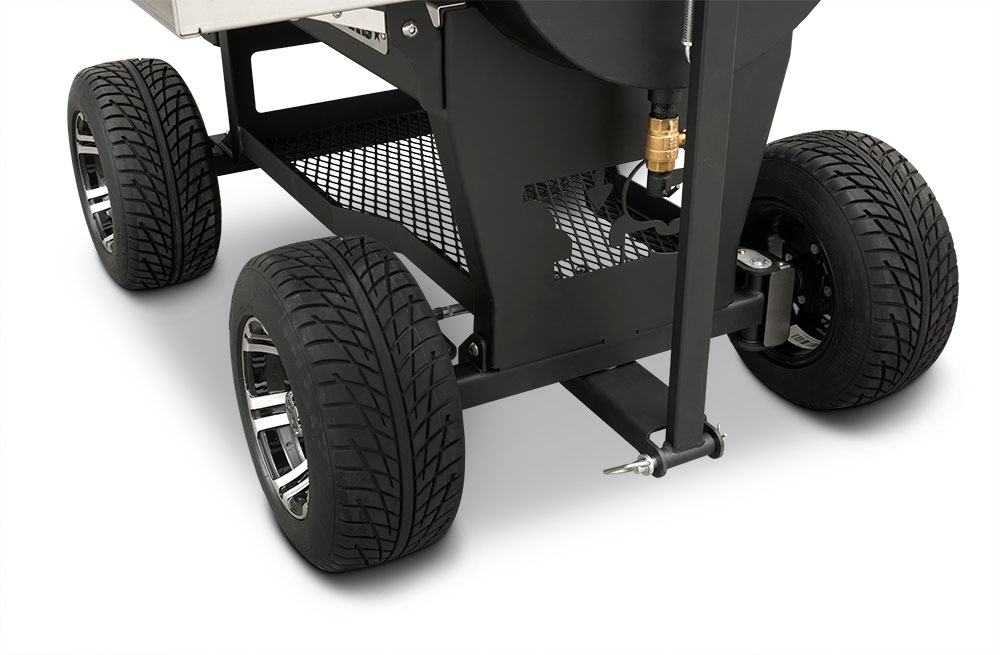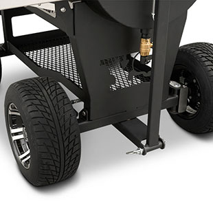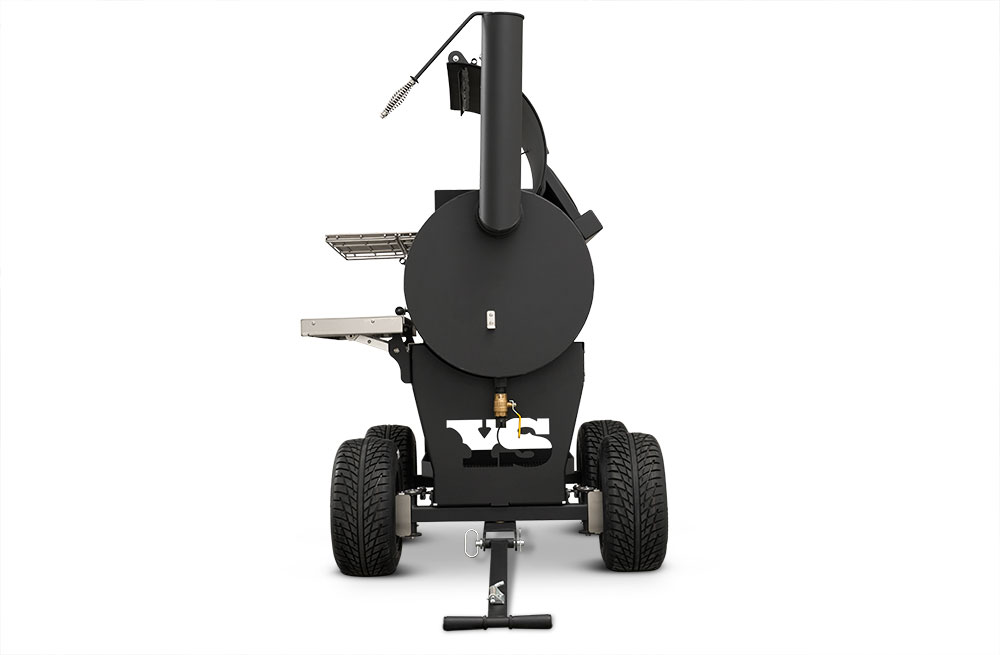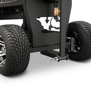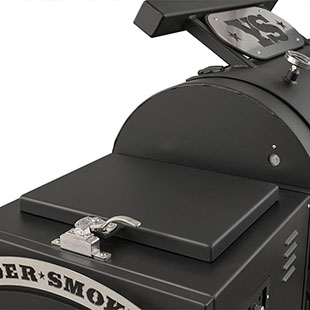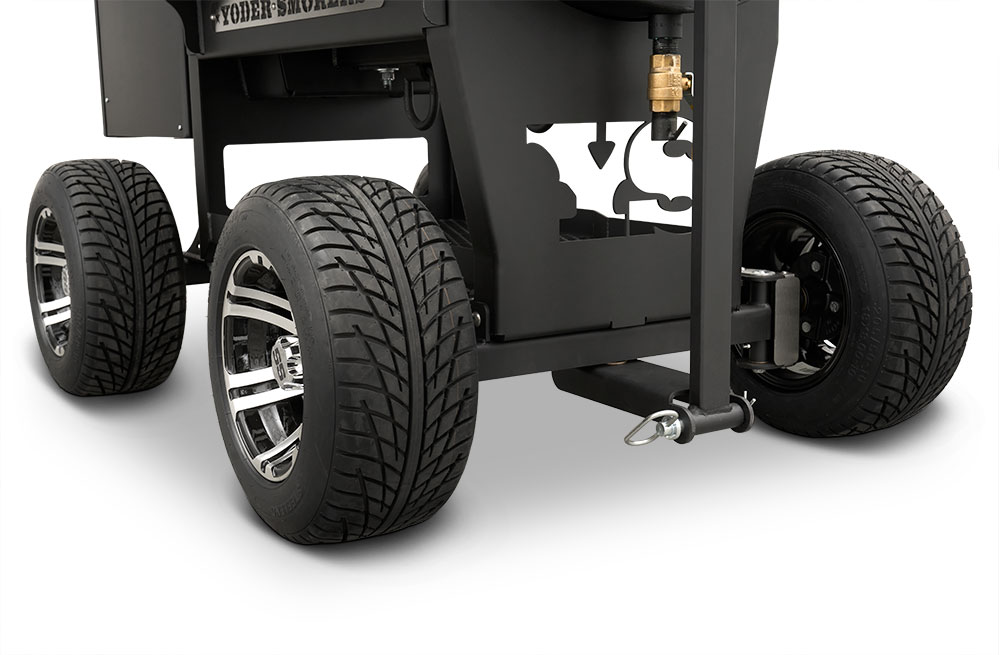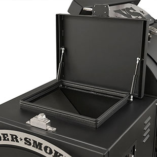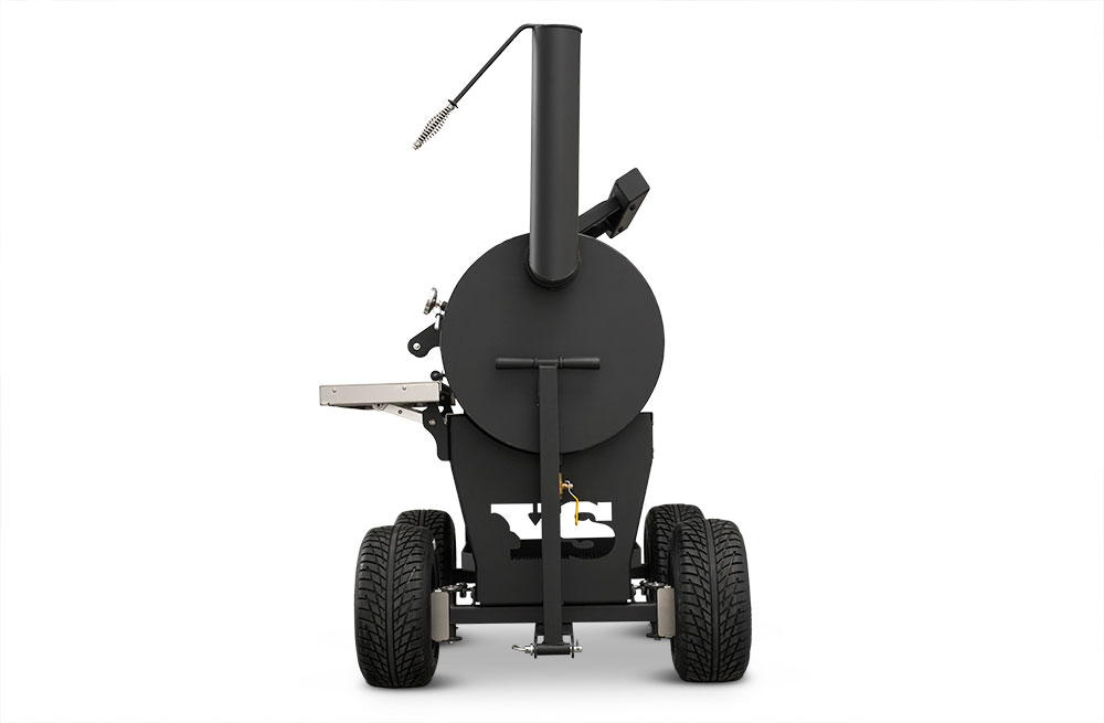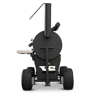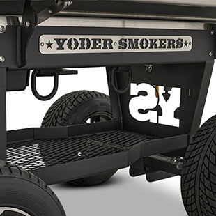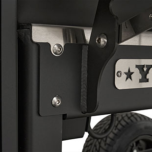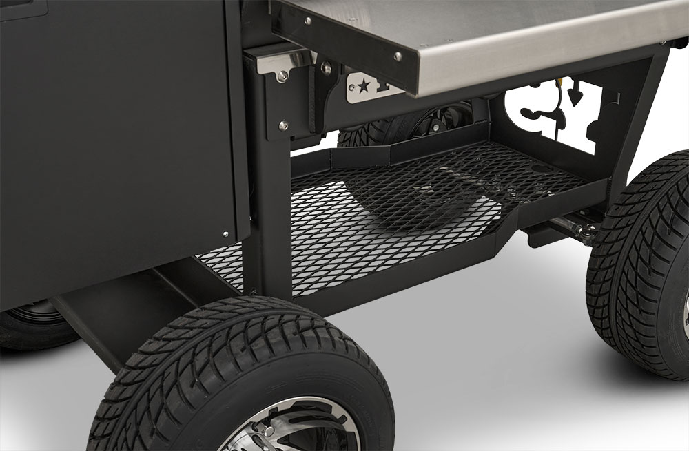 Last but certainly not least is the rugged, all-purpose cart. The cart is equipped with 10″ alloy wheels wrapped in pneumatic tires that are 8″ wide, perfect for handling nearly any terrain. Transporting and positioning the YS1500s Outlander Series is a breeze with its integrated pull handle and newly designed steering axle. This new steering axle design provides a much tighter turning radius and makes the cooker markedly more simple to move. As a result, the Outlander package allows you to get your favorite pit into those hard-to-get places. The new cart also incorporates a large storage area to keep extra pellets and accessories within reach while you cook.