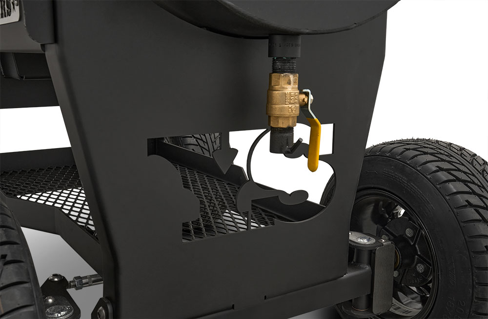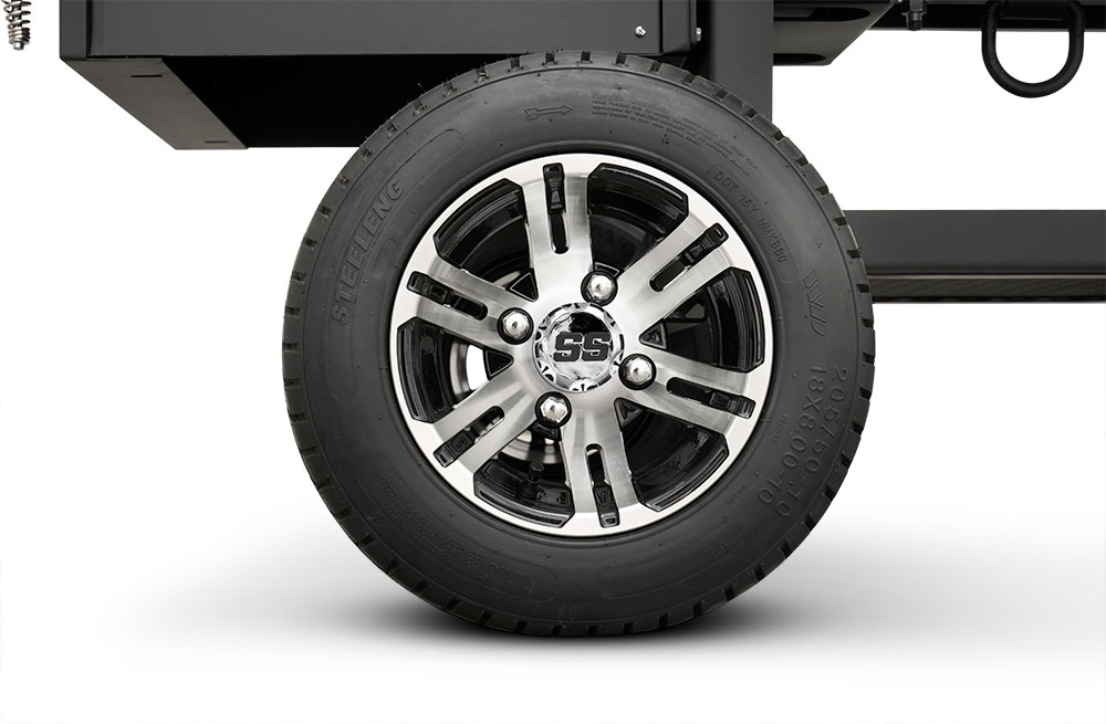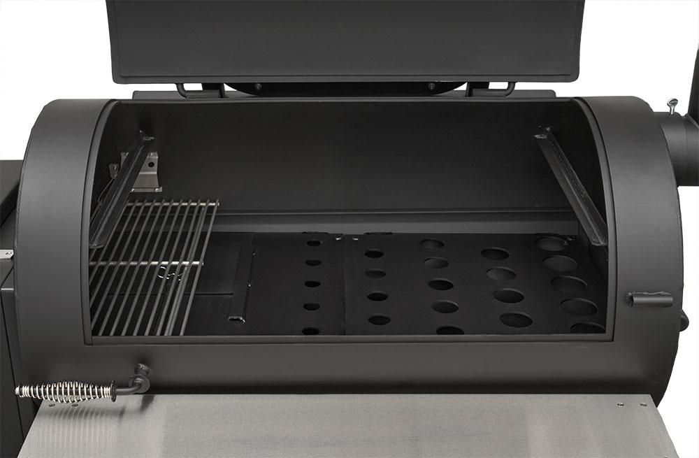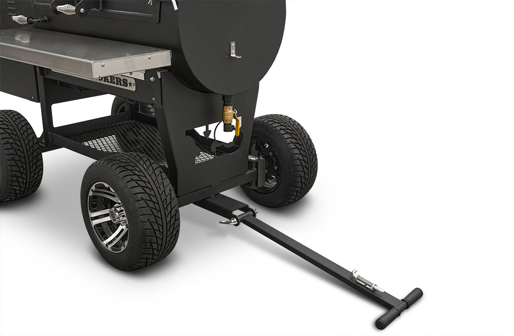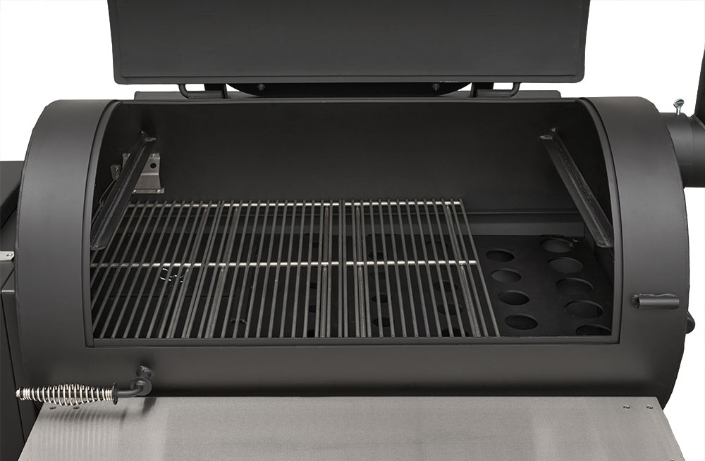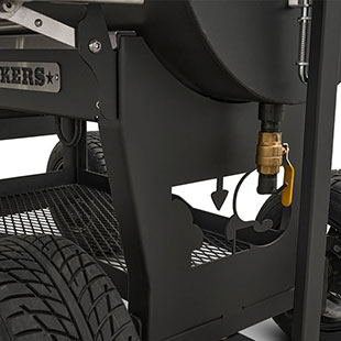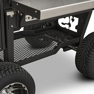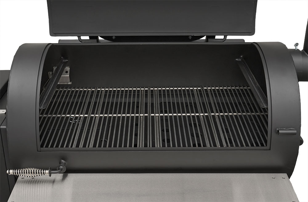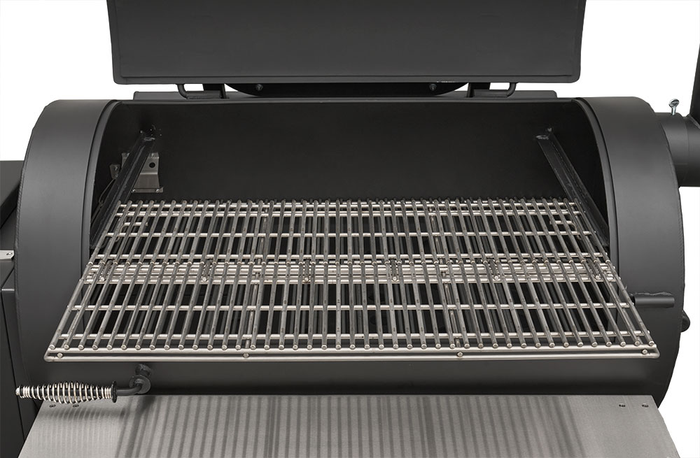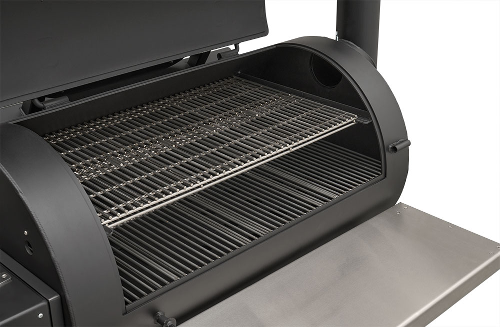 Last but certainly not least is the rugged, all-purpose cart. The cart is equipped with 10″ alloy wheels wrapped in pneumatic tires that are 8″ wide, perfect for handling nearly any terrain. Transporting and positioning the YS1500s Outlander Series is a breeze with its integrated pull handle and newly designed steering axle. This new steering axle design provides a much tighter turning radius and makes the cooker markedly more simple to move. As a result, the Outlander package allows you to get your favorite pit into those hard-to-get places. The new cart also incorporates a large storage area to keep extra pellets and accessories within reach while you cook.