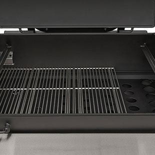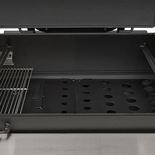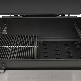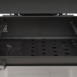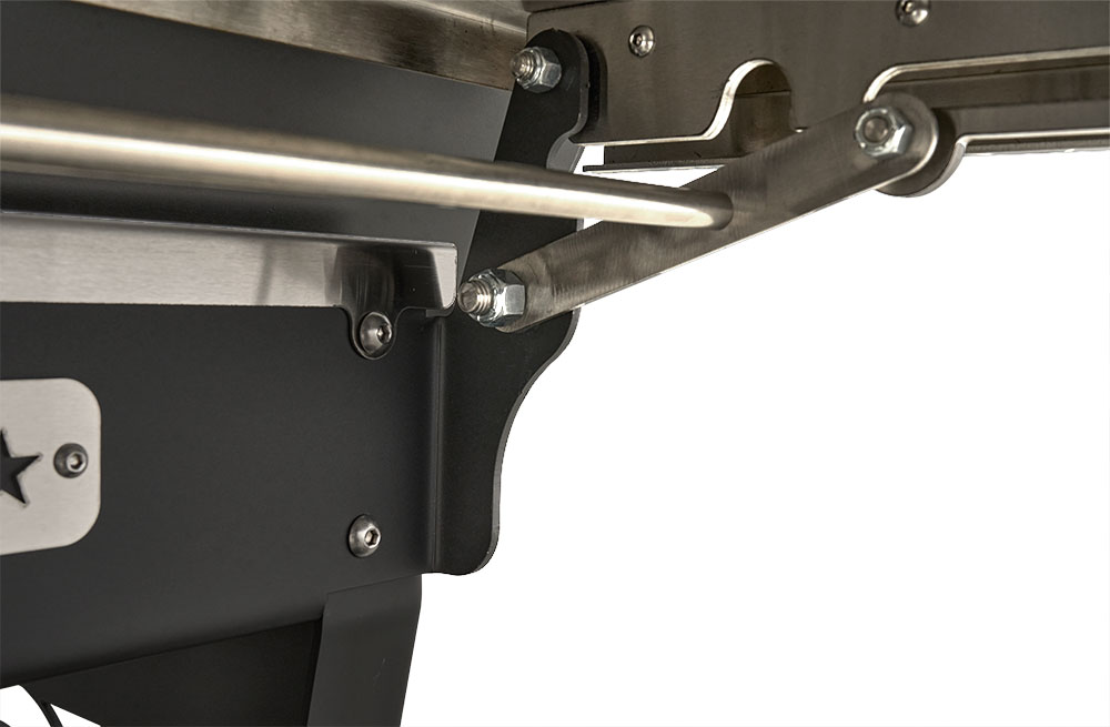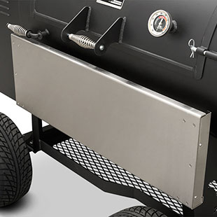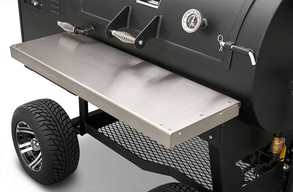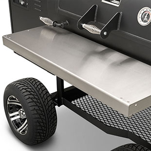 The solid surface, stainless steel fold-down shelf keeps the footprint compact for travel and storage while providing an ample work surface to meet the needs of this Outlander’s capacity. Set full pans on the surface and have full use of the pit with more than 8” of clearance. Creating this functional surface is a result of real-world use and feedback from our customers. Fold it up, lock it into place, and get cooking — and when you need the space for travel, storage, or simply more room to work, just fold it down and it's out of the way.