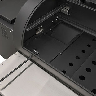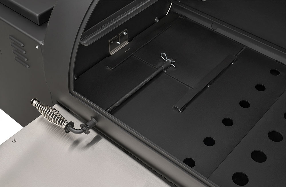 - Integrated pellet dump for easy change of flavors and clean up for storage. Just lower the chute, open the slider and empty the pellets into a bucket.