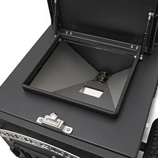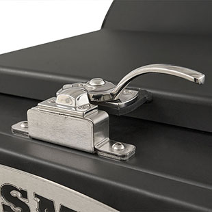 - Water resistant lid on top of the hopper with commercial latch and hardware.