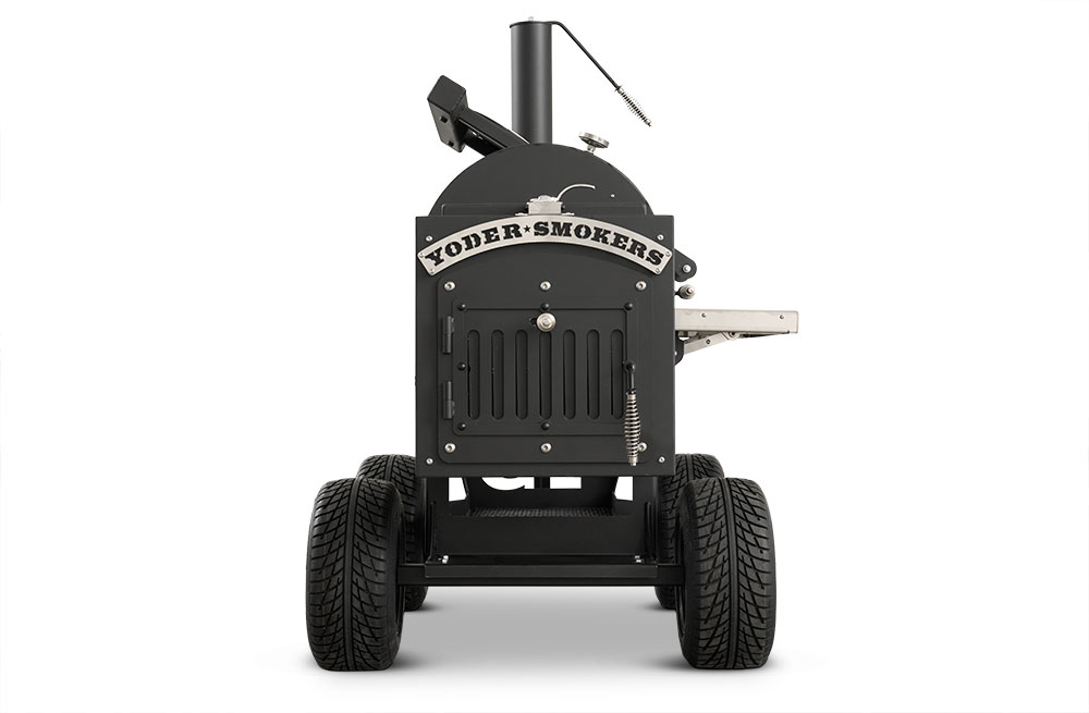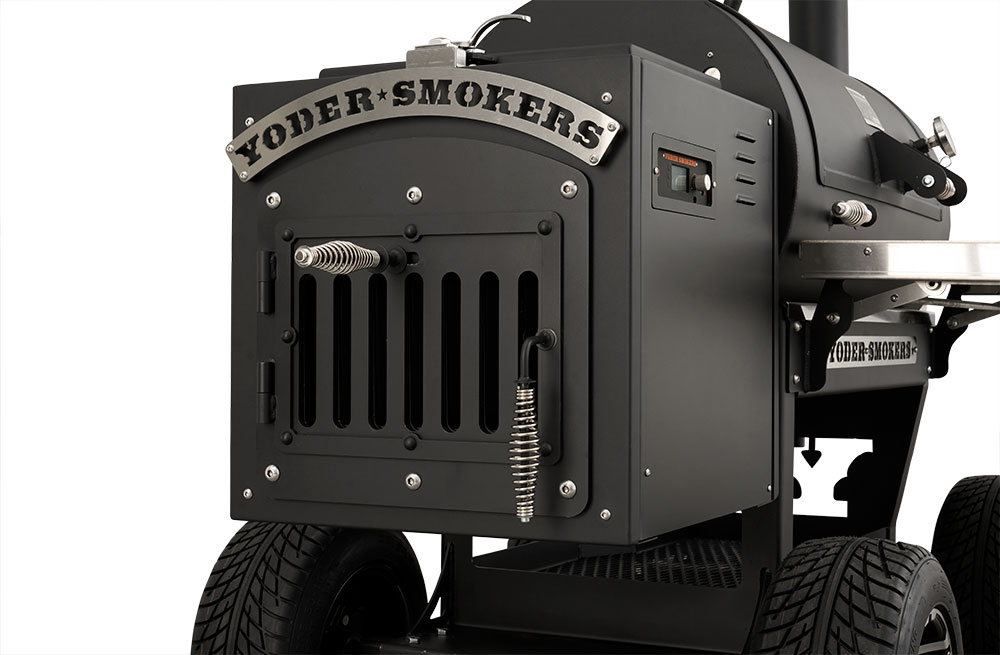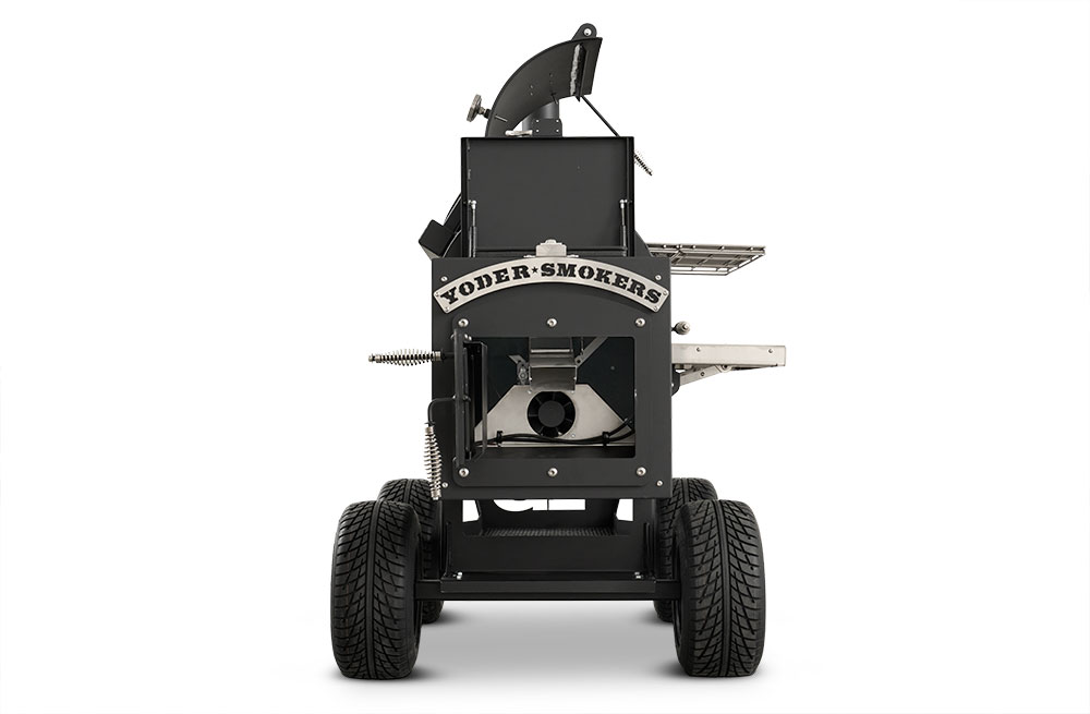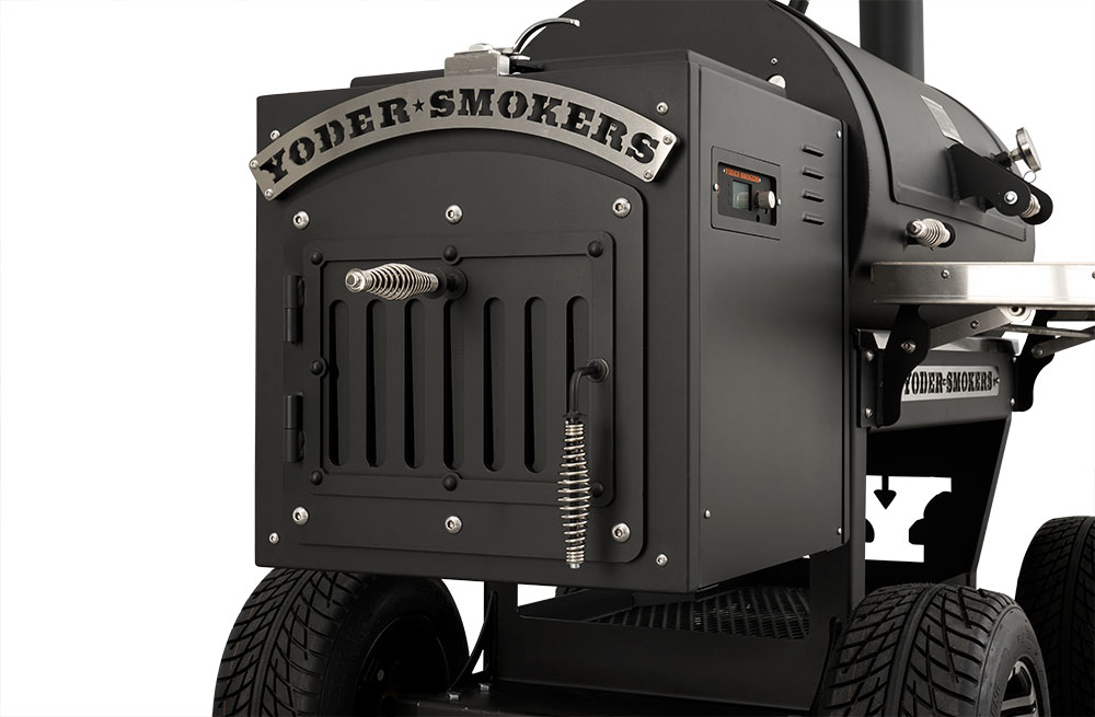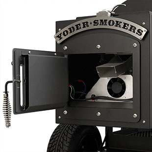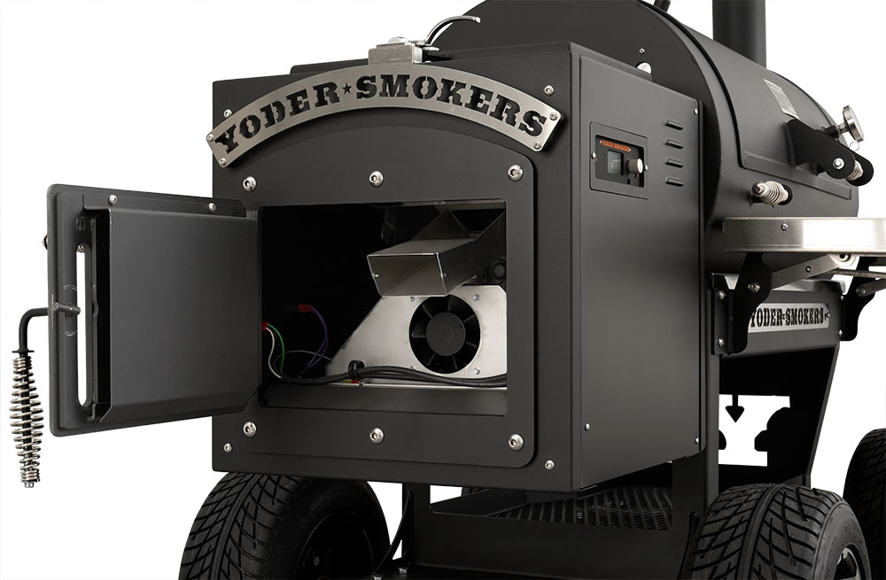 - Boiler-style door on the end of the hopper provides that iconic Yoder Smokers look but also allows for direct access to critical components for easy service.