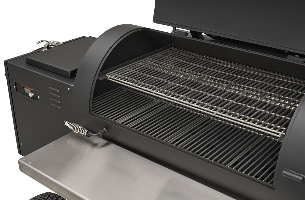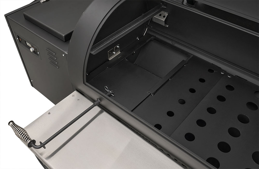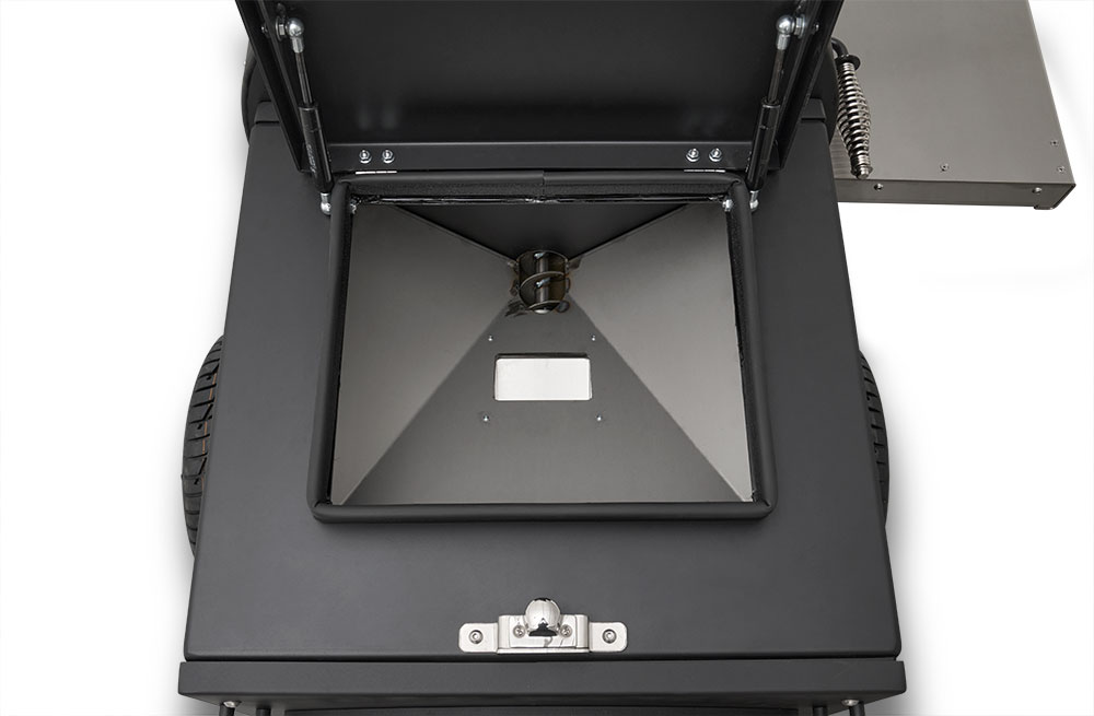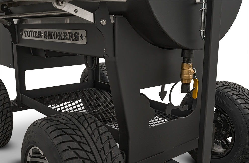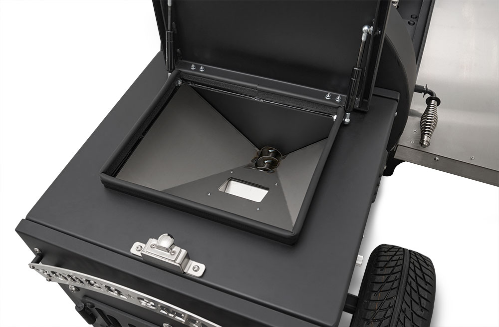 - Boiler-style door on the end of the hopper provides that iconic Yoder Smokers look but also allows for direct access to critical components for easy service.