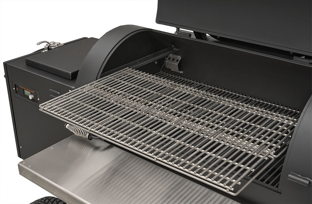 The design started with our award-winning YS1500s pellet grill, the first cooker on the market that was designed to be a direct competitor to traditional offset wood pits with all the convenience of a pellet grill. The patented heat management system created a new level of control for cooks and began a new era in pellet cooking. The Outlander added a traditional-looking firebox that integrates the control systems and other components that create the most serviceable pellet grill on the market with 40 pounds of pellet capacity and integrated pellet dump.