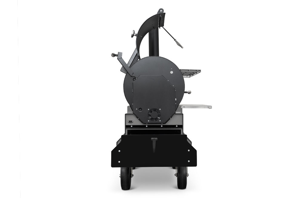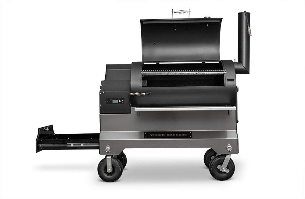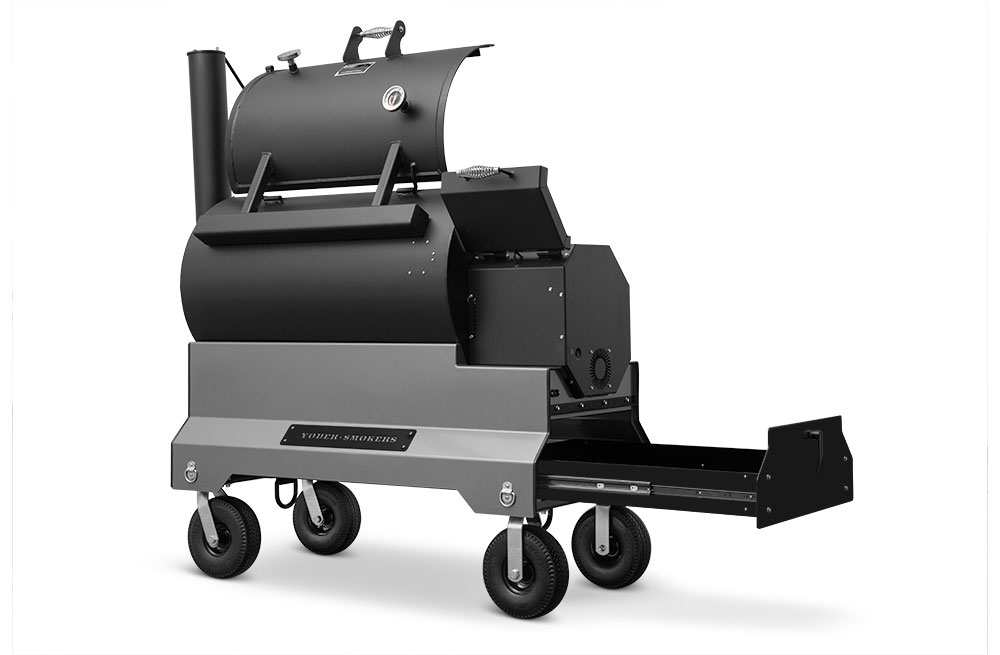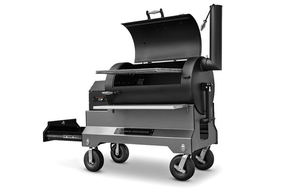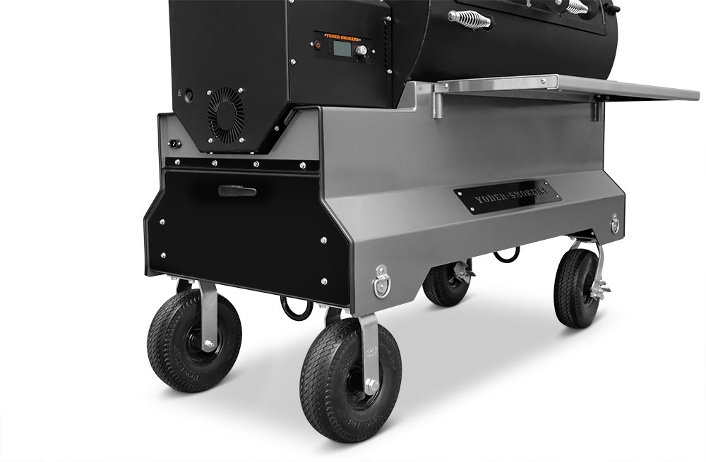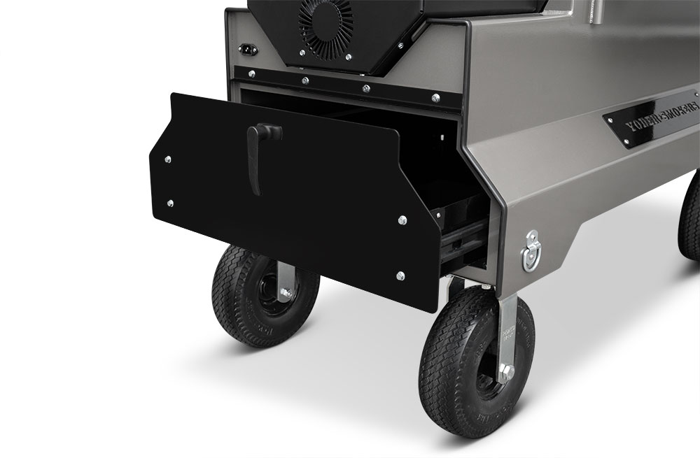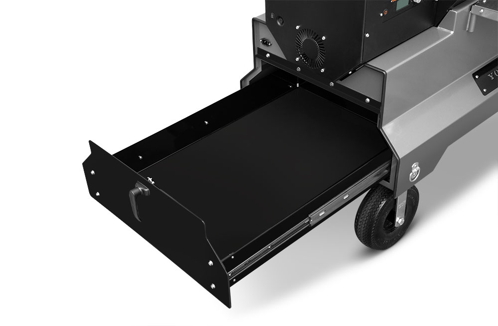 This YS1500S model has been upgraded with an integrated storage drawer capable of storing 150lbs of gear within arm’s reach and providing secure storage until your next cook — everything from grilling grates, thermometers, and gloves to the Yoder Smokers wood-fired oven and cast-iron griddle — and so much more. This high-capacity drawer is also weather, dust, and critter resistant so your cooking gear is always ready, just as you’ve left it. Lastly, access is conveniently located at the end of the cart to keep the footprint compact and out of the way while cooking.