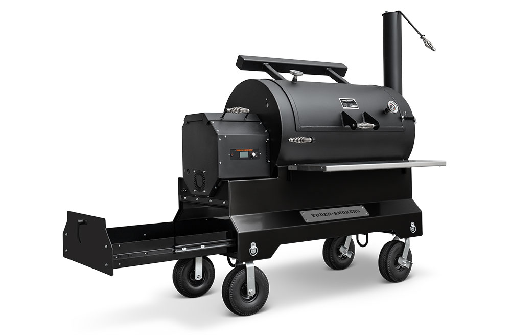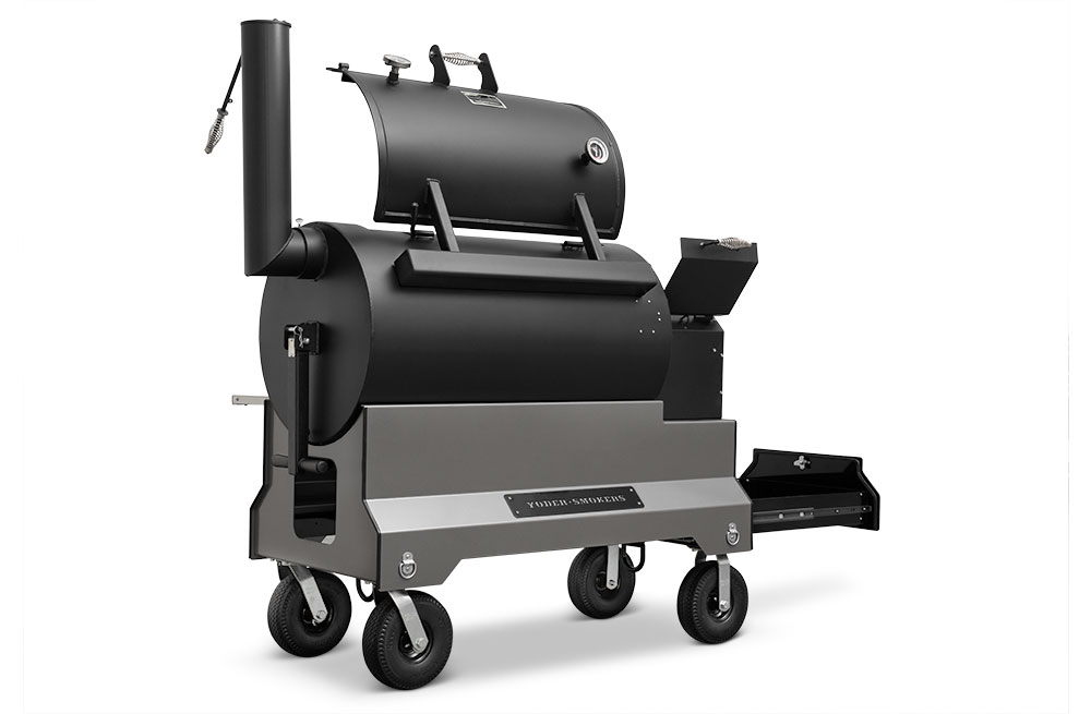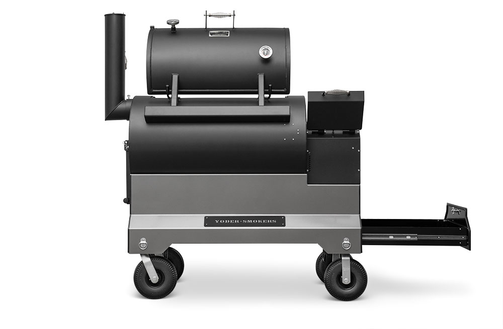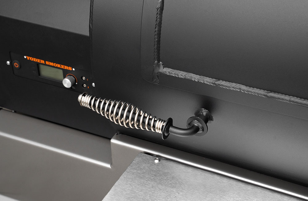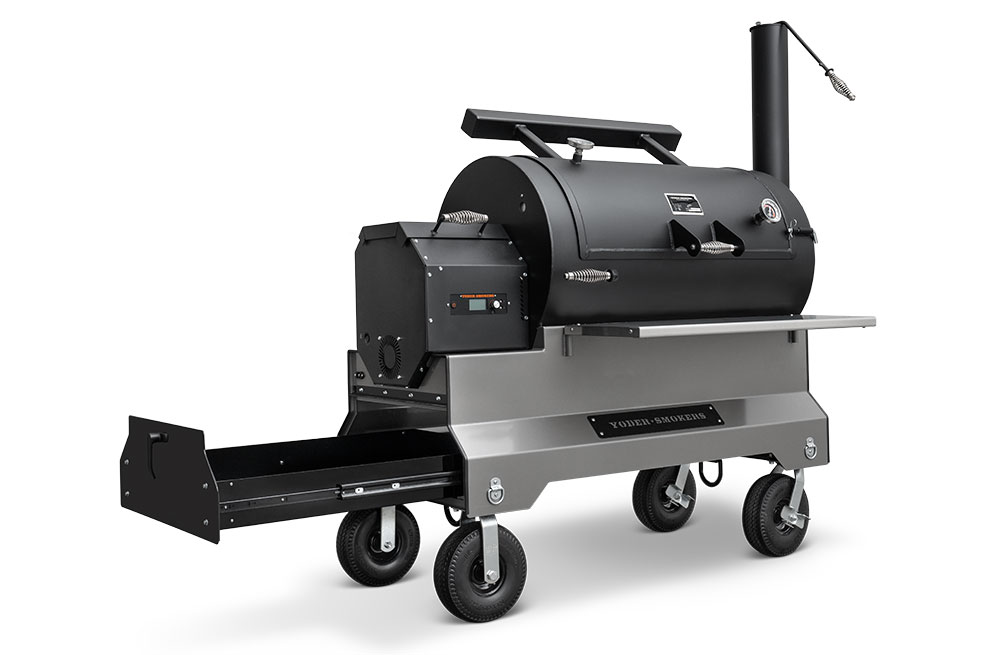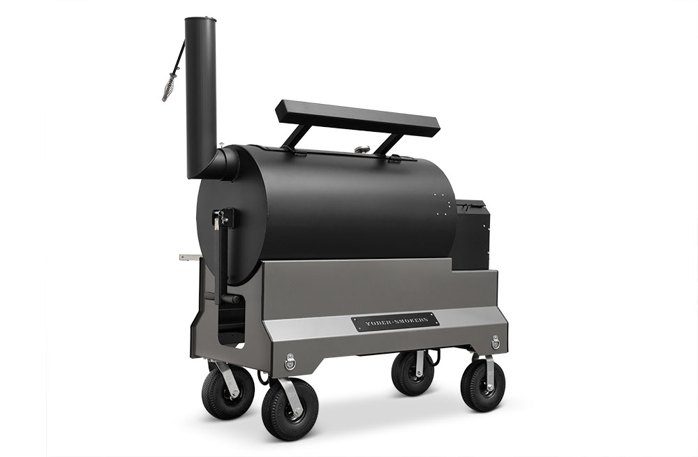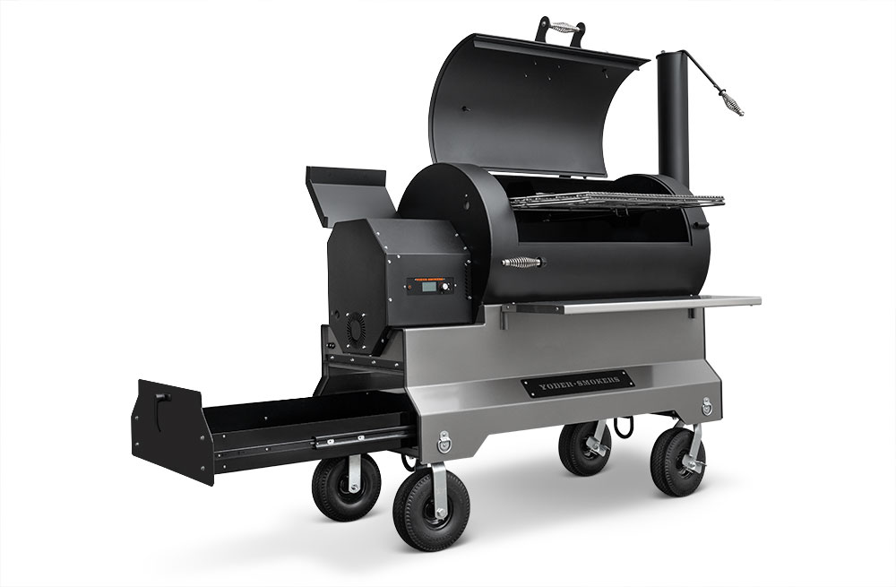 This YS1500S model has been upgraded with an integrated storage drawer capable of storing 150lbs of gear within arm’s reach and providing secure storage until your next cook — everything from grilling grates, thermometers, and gloves to the Yoder Smokers wood-fired oven and cast-iron griddle — and so much more. This high-capacity drawer is also weather, dust, and critter resistant so your cooking gear is always ready, just as you’ve left it. Lastly, access is conveniently located at the end of the cart to keep the footprint compact and out of the way while cooking.