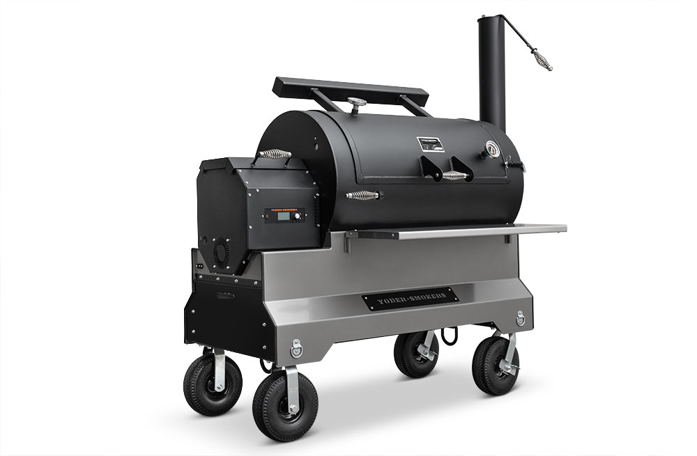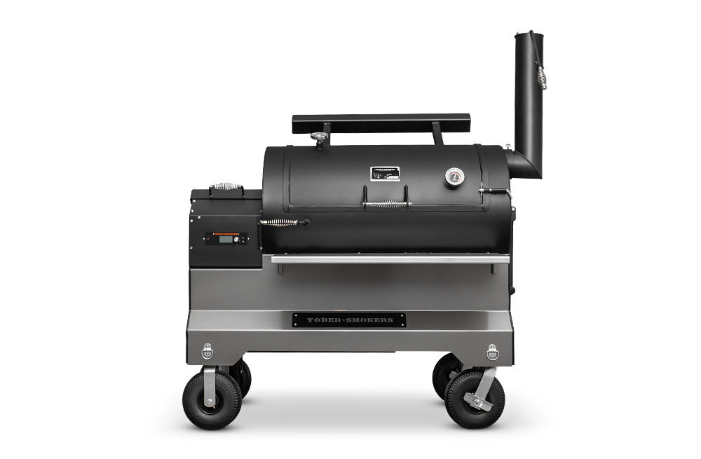 The Yoder Smokers YS1500S pellet cooker stands alone and above its peers, engineered to transform your outdoor cooking experience without compare. Its versatility is uniquely centered around the combination of our heavy gauge steel offset wood pit designs, hyper-intelligent ACS (Adaptive Control System), and the heart of the cooker, the Heat Management System. Yoder Smokers’ patented Heat Management System allows the pitmaster to control the balance of heat across the cooking chamber, effortlessly managing the temperature zones of the pit to produce that coveted “low and slow” wood-fire flavor. Because consistent smoke profile mean the most flavorful food. But this cooker does more than smoke, it has the ability to flame-grill. Yoder Smokers introduced direct flame-grilling to the pellet industry nearly 20 years ago and with the YS1500S you have the best of both worlds — a true smoker with the ability to direct flame grill on-the-fly without any modification. Low and slow or hot and fast, you have unmatched versatility at your fingertips in a heavy gauge steel cooker. Lift the hood on the YS1500S and you'll quickly understand why this will be your cooker for life.