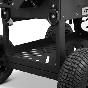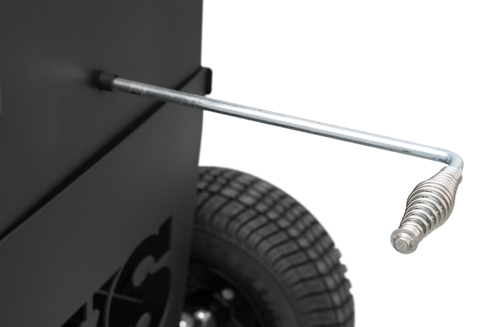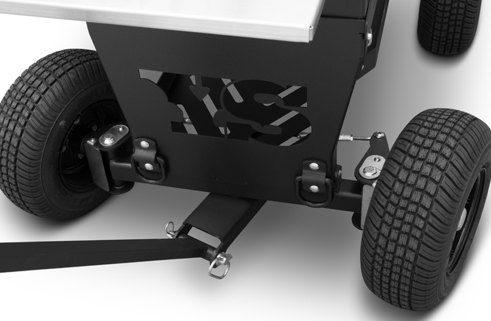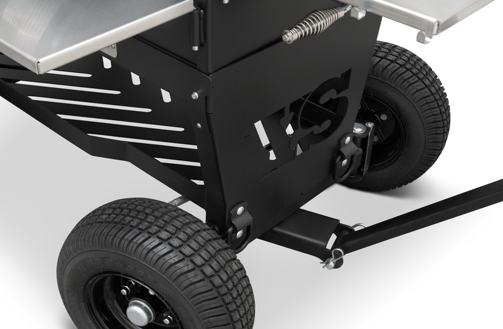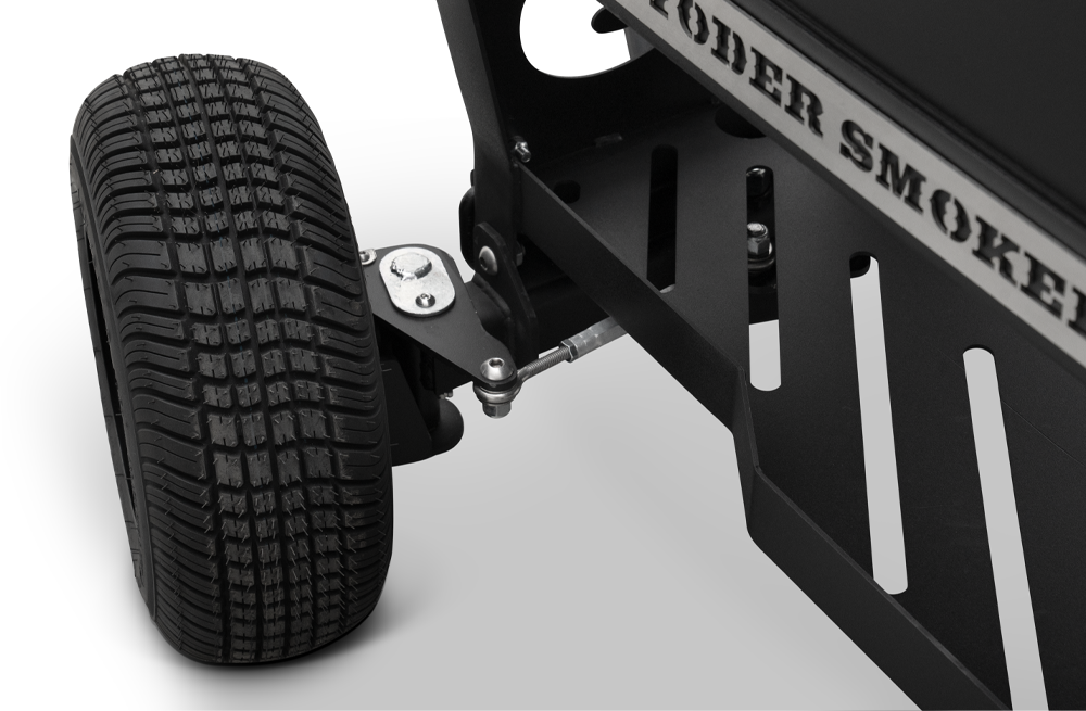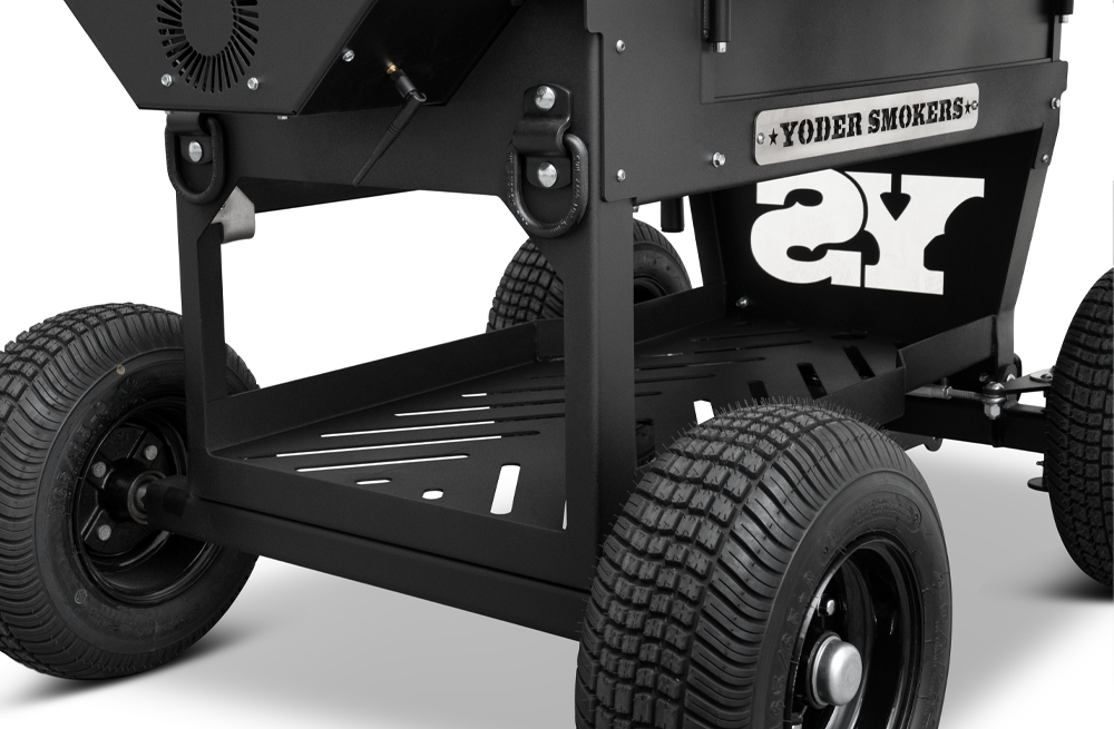 The Outlander’s rugged, all-purpose cart is equipped with 10″ wheels wrapped in pneumatic tires that are 6.5″ wide, ideal for handling nearly any terrain. Moving and positioning the YS640S Outlander is effortless with its integrated pull handle and steering axle, providing a tight turning radius, and making the cooker markedly more maneuverable, especially when it comes to those hard-to-get places. The integrated steering axle allows for 22% degrees of wheel angle making tight quarters a breeze to handle. The Outlander cart also features a large storage area to easily store all the essential cooking accessories. Available in both the YS480S and YS640S, this Outlander package is next level.